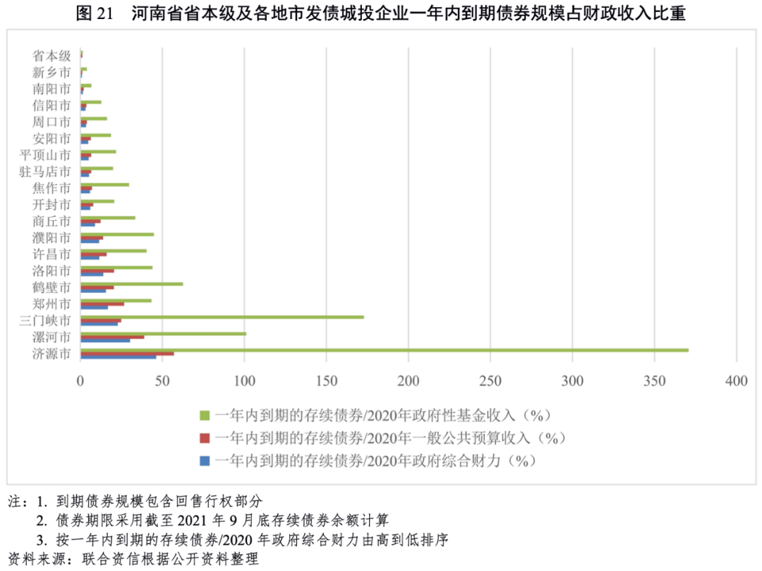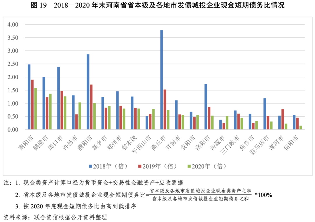 3.河南省各地市財政收入對發債城投企業債務的保障能力