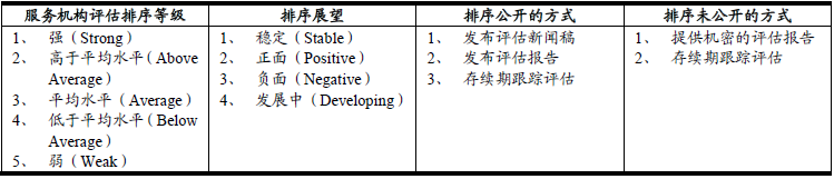 標普綜合評估備位服務機構的能力經驗及備位服務的“到位”程度等情況,也把“備位服務”分為“熱備位”、“溫備位”和“冷備位”,并列出了細化認定標準: