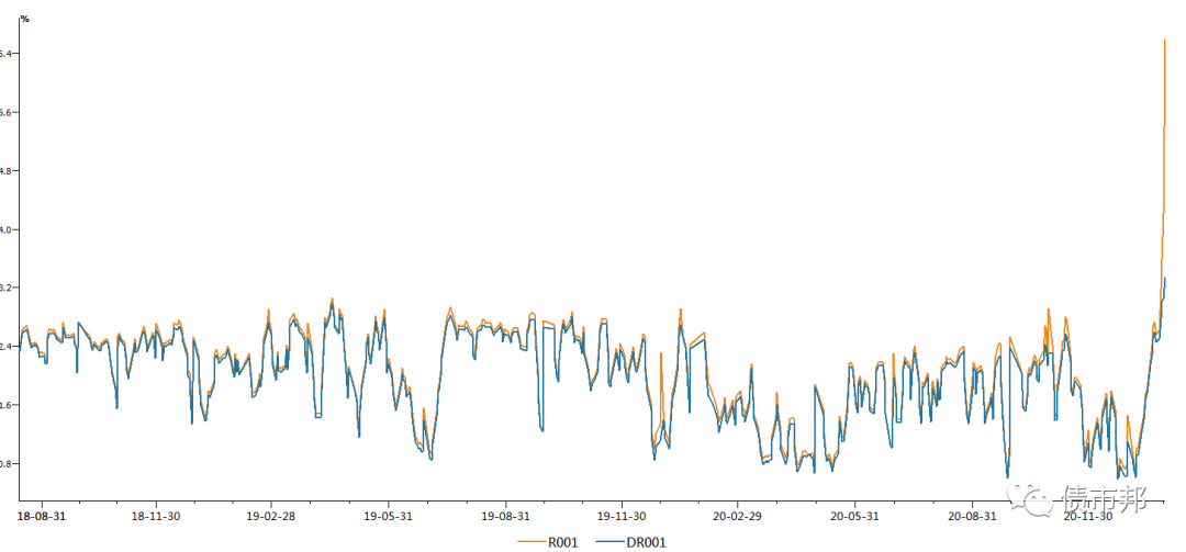銀行間市場的質押式回購隔夜利率R001飆升到6.58%的近6年高位,DR001這個銀行機構押利率借錢的最優(yōu)市場利率也達到了3.33%。考慮到R001的價格是包含了DR001的,那非銀機構押信用債借錢的平均成本很可能已經達到了接近10%的水平了。