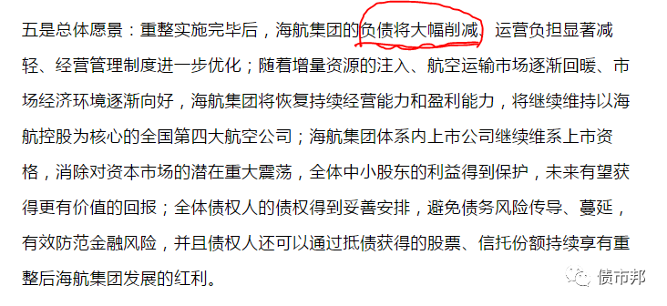 債權人對重整后的回收率不要抱太高的希望。愿景中明確提到了,重整完后海航集團的的負債將大幅縮減,這個代價無疑就是債權人的債權了。消息傳出當天,15海航債出現了1塊錢凈價的成交,也算是投資人一種無聲的抗議。