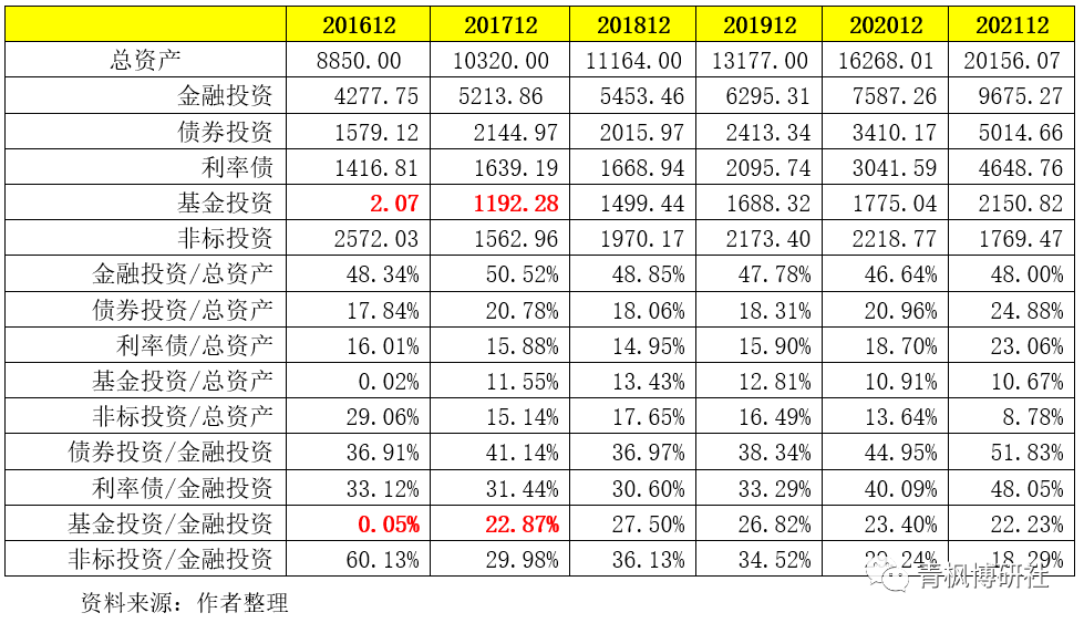 (二)金融投資/總資產:位于45-50%之間,超過50%為債券