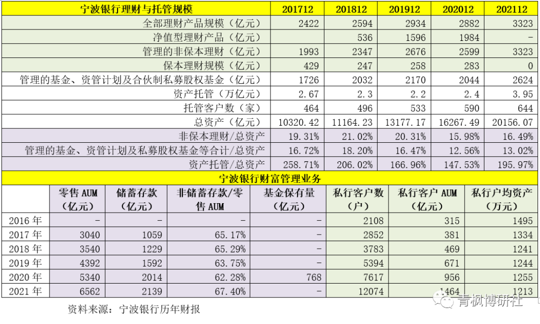 1、寧波銀行從2018年起,將推動財富管理和私人銀行業務作為其零售業務轉型發展的重點戰略方向,并成立了總行財富管理部、私人銀行部,將零售業務分為個人信貸、財富管理和私人銀行三大板塊。